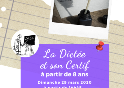• La dictée et son certif’  – prévue en mars 2022