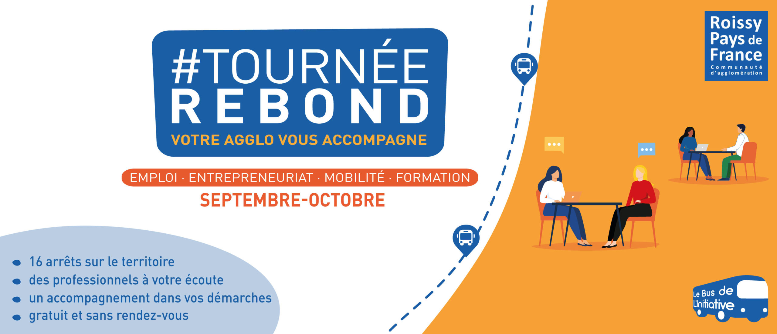 Du 6 septembre au 19 octobre, la communauté d’agglomération lance la deuxième édition de la Tournée rebond. Ce bus, opéré par l’association Créative marquera une quarantaine d’arrêts dans les villes et villages de l’agglo, à la rencontre des habitants, pour les informer sur l’emploi, la formation, la création d’entreprise ou la mobilité !