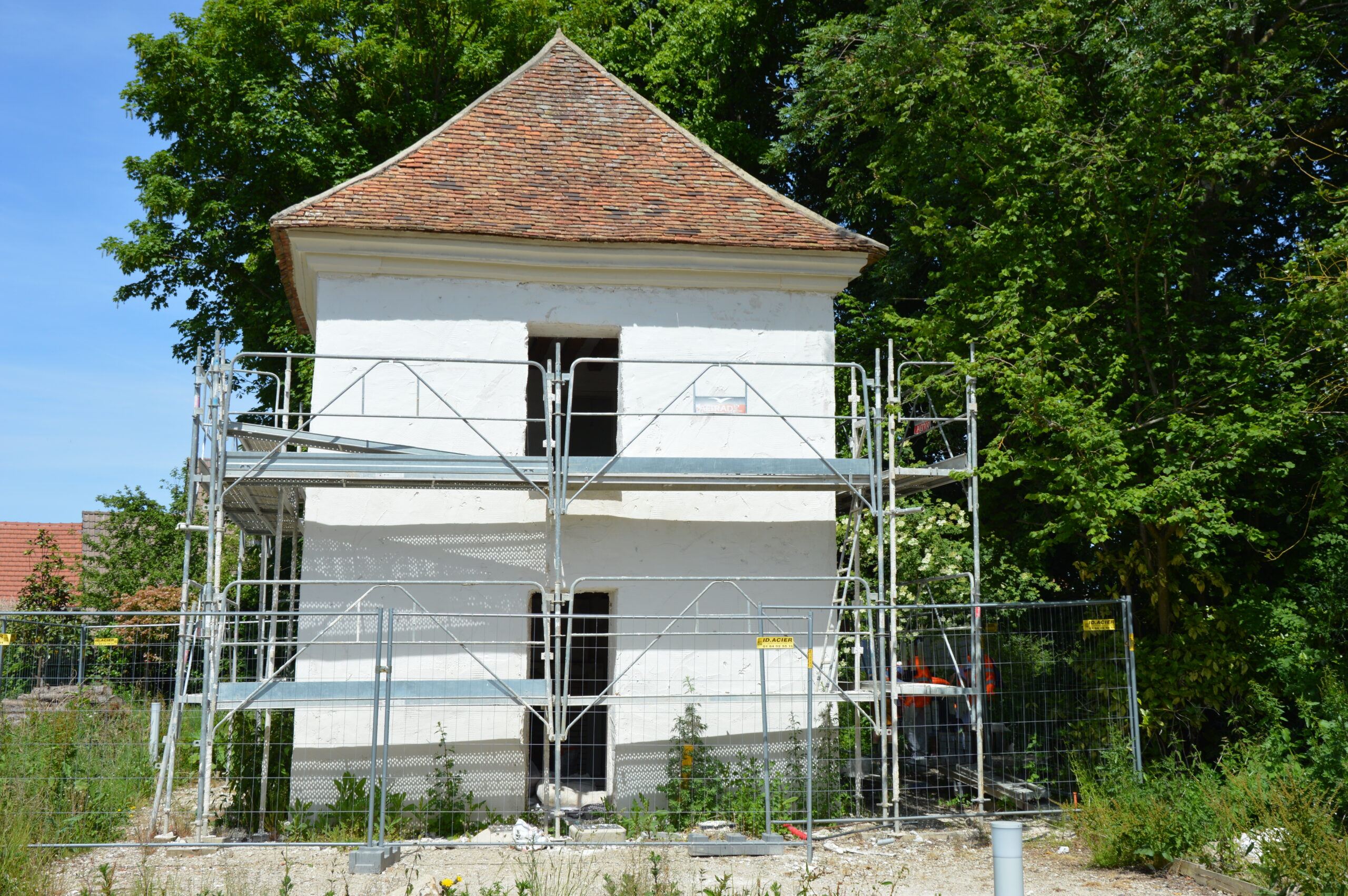 Plusieurs éléments le composent, l’église, la mairie, la machine élévatrice des eaux, les champs, comme une évocation de la ville à la campagne.