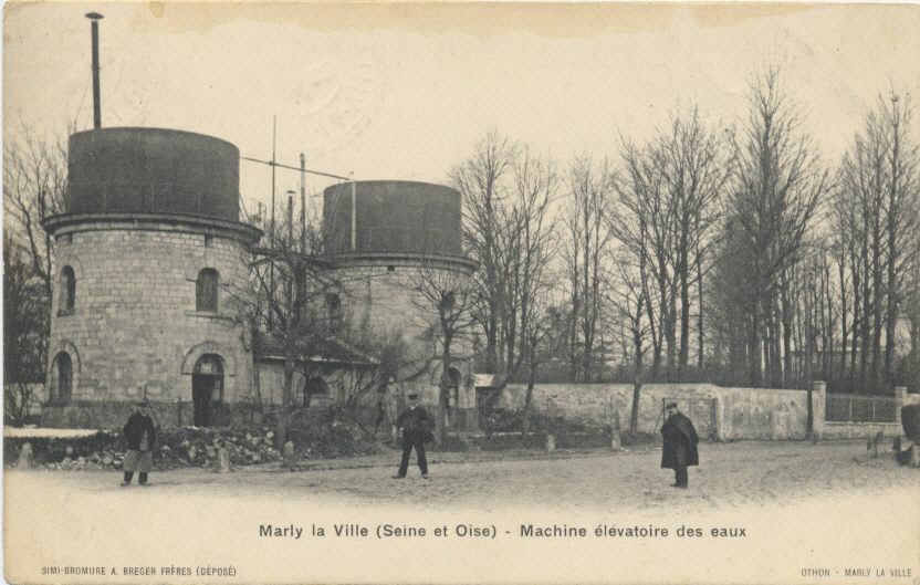 Construite en 1882, à l’entrée du village, la machine élévatrice d’eau nécessite un forage de 70 mètres de profondeur. La construction est composée : d’un puits de 10 mètres, d’un bâtiment du puits et de la machine supportant les réservoirs, de deux réservoirs en tôle de 40m3, d’une machine locomobile à charbon de 3 à 4 chevaux, d’une pompe débitant 5000 litres/heure et d’un bâtiment d’habitation pour la garde.